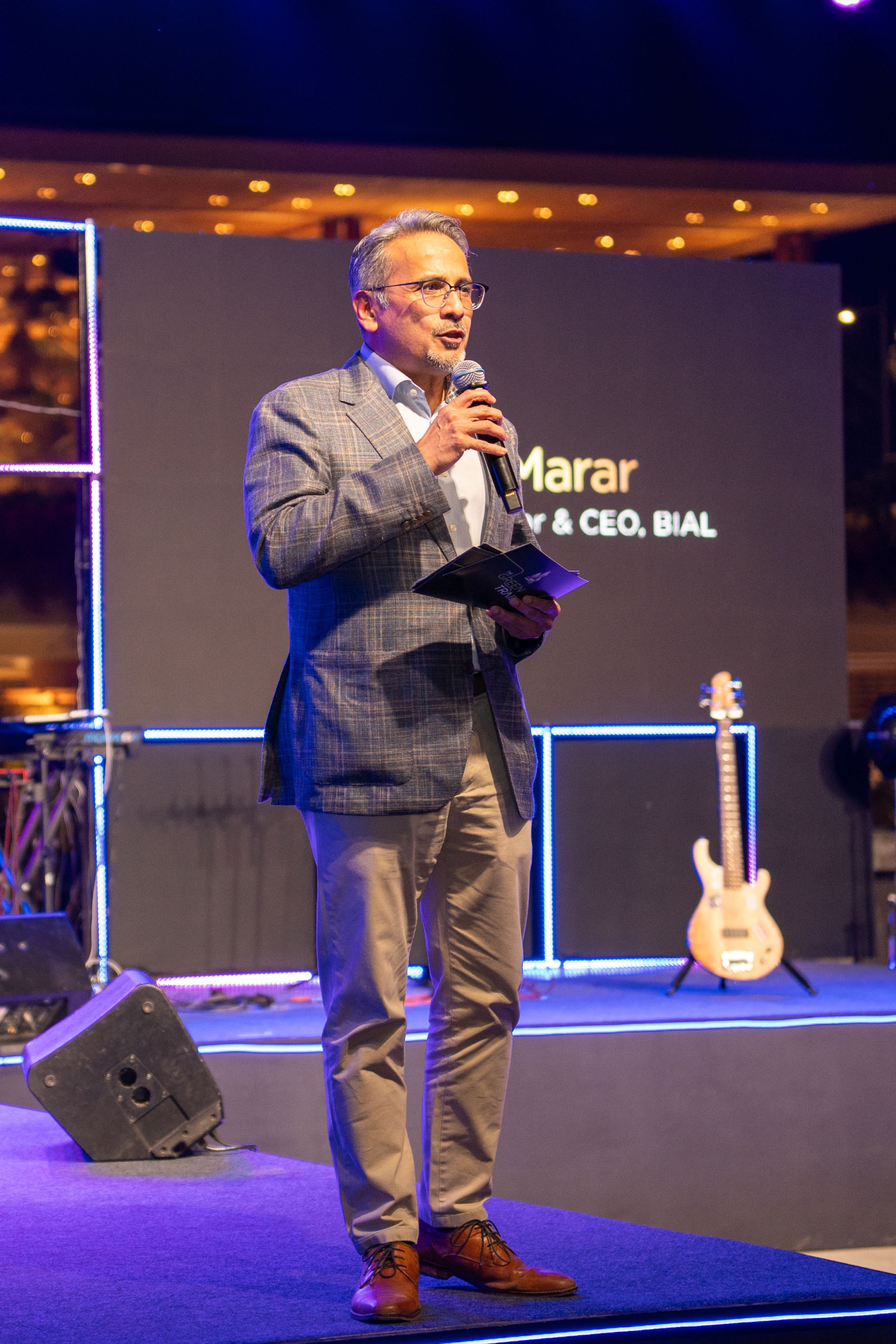 Inspired by the newly unveiled Gate Z Lounge, the immersive neon themed décor came to life following the announcement of its inauguration by the MD & CEO, Mr. Hari K Marar. More than 310 stakeholders gathered for an evening that celebrated collaboration, shared progress, and the collective spirit that powers BLR Airport.